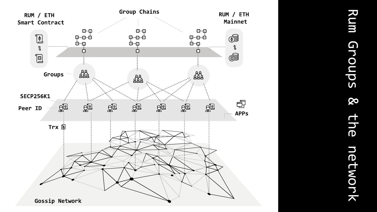 这里面可能很多名词看起来很奇怪。 比如昨天我发过这张图,在 RUM 中文群(Mixin ID: 7000100109)里面,已经有同学在问,说这个 Gossip Network 八卦网络(是什么)。