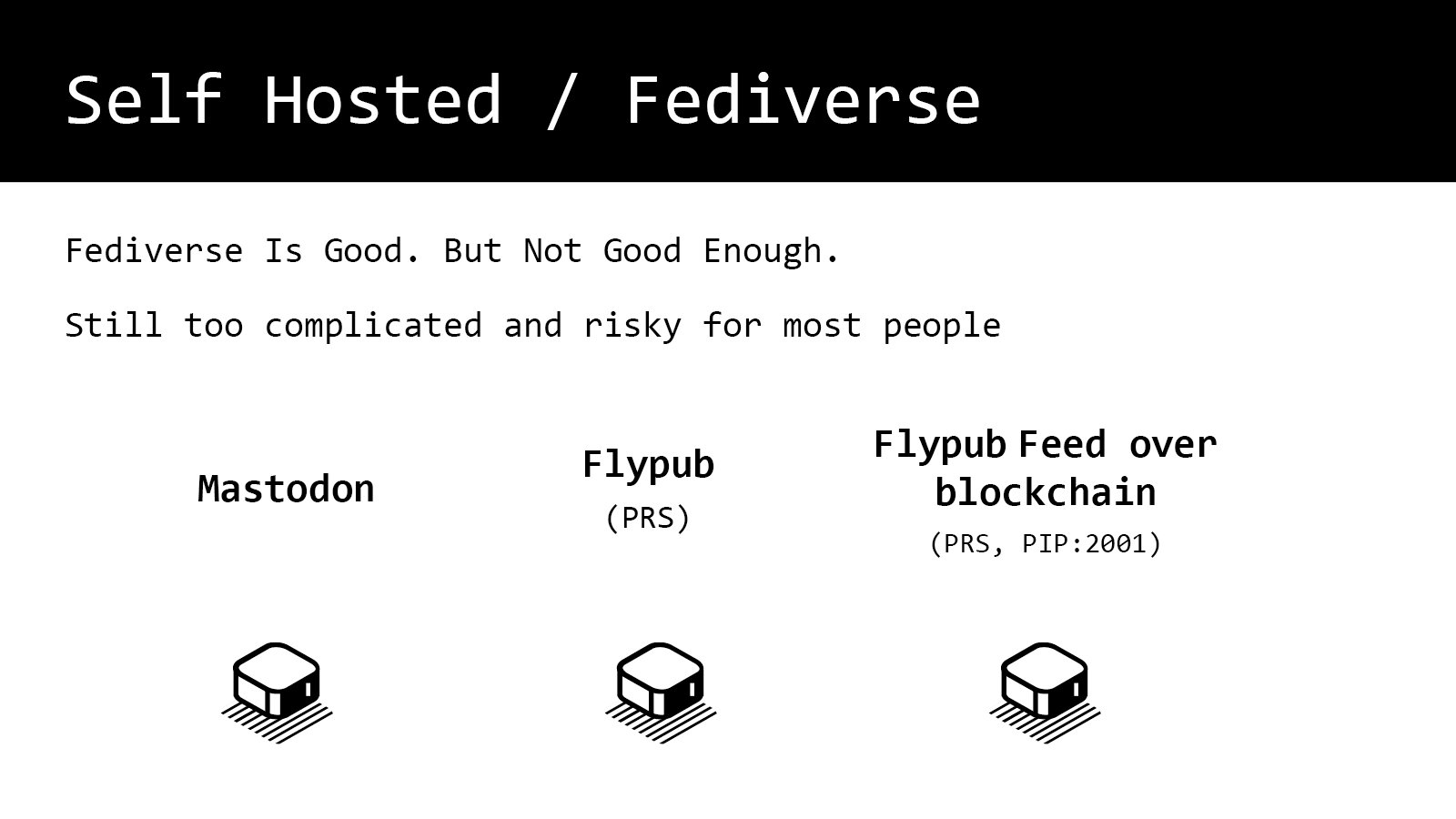 这种中心化的架构,它就天生的带来一些问题,比如说,我发的内容到底属于谁。